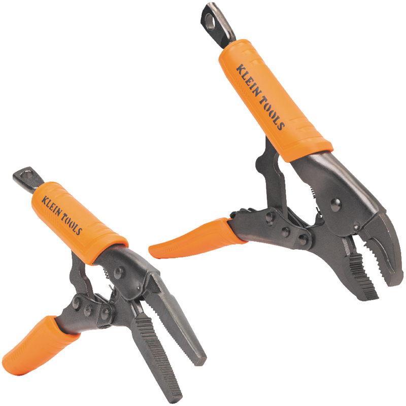 Unlock exceptional gripping power and unparalleled torque with Klein Tools' 10-Inch Curved Jaw Pliers (Cat. No. 38602) and 6-Inch Long Nose Locking Pliers (Cat. No. 38611). Expertly designed for high locking force, these pliers bring toughness to your projects. The intuitive thumb knob ensures effortless and swift size adjustments, while the lever-less design, combined with molded grips, guarantees a pinch-free experience and effortless handle opening for unrivaled comfort during the workday.