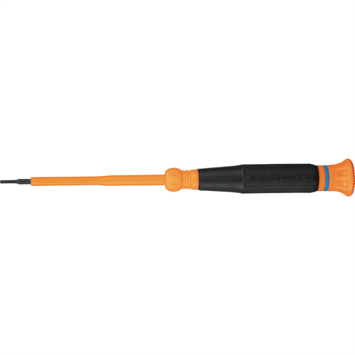 Designed for precision work, Klein's 1/16-Inch Slotted Insulated Precision Screwdriver features a rotating cap for optimum control. Screwdriver made of the highest quality tempered steel, carefully heat-treated for maximum strength, and precision ground to fit screw openings securely. Klein's exclusive Cushion-Grip™ handle offers outstanding comfort and control.