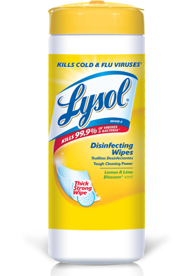 LYSOL® Disinfecting Wipes eliminates the following bacteria and viruses on hard non-porous surfaces*: