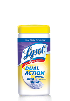 LYSOL® Dual Action Disinfecting Wipes eliminates the following bacteria, fungi and viruses on hard non-porous surfaces*: