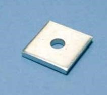 - Square steel washer plate used on top of channel or angle for hanger rod or U-bolt attachment