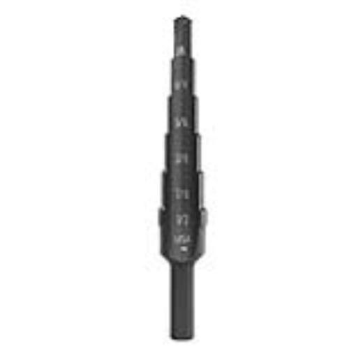 Step Drill Bit, 6 Hole, 3/16 in. to 1/2 in. by 1/16 in.