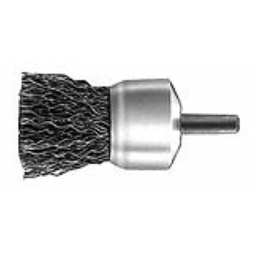 For pipe cleaning, deburring, removing hard carbon deposits from piston heads, cylinders, and valve seats and removing flash, the Milwaukee End Brushes are ideal. This Crimped End Brush has a face diameter of 1 inch and is made of .010 stainless steel wire. Milwaukee offers a variety of sizes and wire gauges.