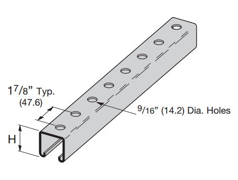 | B22H178GALV10 | 1 5/8” | 1 5/8” | 10' | 12 GA | 1.85 Lbs./Ft. | 9/16" | 1 7/8" | Galvanized