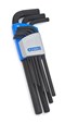 The Allen 56609G 22-Key SAE/Metric Long Arm Hex Key Set includes the following sizes: INCH 0.050, 1/16, 5/64, 3/32, 7/64, 1/8, 9/64, 5/32, 3/16, 7/32, 1/4, 5/16, 3/8; MM 1.5, 2, 2.5, 3, 4, 5, 6, 8, 10.