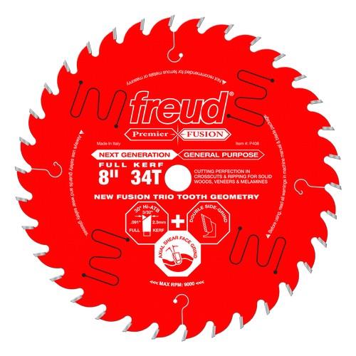 Freud's radical "Fusion" tooth design combines a double side grind with a 30 degree Hi-ATB to produce a glass-smooth, chip-free top and bottom surface while ripping and crosscutting.TiCo Hi-Density carbide provides a sharper edge and flawless finish with a dramatically longer cutting life.Laser-Cut Anti-Vibration Slots drastically reduce vibration and sideways movement in the cut extending blade life and giving a crisp, splinter-free flawless finishPerma-Shield™ Non-Stick Coating reduces blade drag, protects the blade from corrosion and pitch build-up.