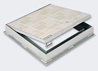 The FT-8050 is recessed 1" to accommodate ceramic tile/concrete flooring. The Acudor FT series aluminum floor doors are designed for interior and exterior applications that require an access opening that will blend in with the surrounding floor material.
