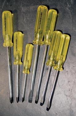 ScrewTechâ„¢ Screwdriver 7 Piece Trox Set, Contains 1 of Each Tip Size x Overall Length, Slotted 1/4" x 7-1/2", 1/4" x 9-1/2", 5/16" x 10", 3/8" x 10", Phillips #1 x 9-1/8", #2 x 7-1/2", #3 x 10", Ergonomic Handle, Crystal Gold Plastic Grip, Chrome Vanadium
