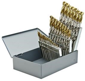 Eco Pro Jobber Length SWG Number 21 piece Drill Set in Steel index, Fractional Sizes 1/16" to 3/8" x 64th increments, High Speed Steel, Titanium Nitride Coated Tips, TiN Coated Tips, 135° Point, Straight Shank, Heavy Duty, Right Hand Spiral, Import