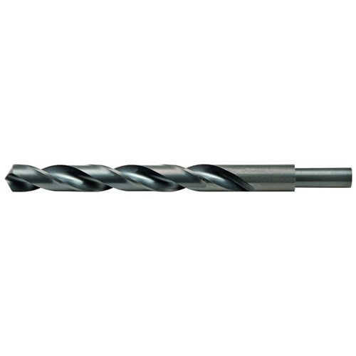 Alfa USA Jobber Length Reduced Shank Drill Bit, 27/64" Diameter, 0.4219 Decimal Equivalent, 3-15/16" Flute Length, 5-3/8" Overall Length, High Speed Steel, Black Oxide Finish, 118° Point, 3/8" Reduced Shank, Right Hand Spiral, Made in USA, 1 per Card