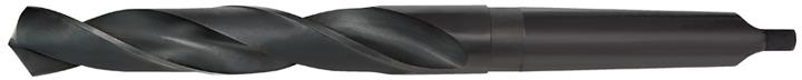 Taper Shank Drill Bit, 27/32" Diameter, 0.8438 Decimal Equivalent, #3 Morse Taper, 6-1/8" Flute Length, 10-3/4" Overall Length, High Speed Steel, Black Oxide Finish, 118° Point, Right Hand Spiral, 1 per Tube