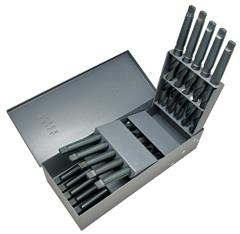 Taper Shank 16 piece Drill Set in Steel index, Metal Indexl Sizes 33/64" to 3/4" by 64th increments, High Speed Steel, Black Oxide Finish, 118° Point, Right Hand Spiral