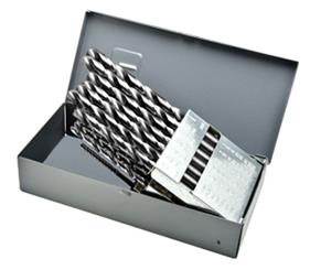 Alfa USA Taper Length SWG Number 16 piece Drill Set in Steel index, Fractional Sizes 49/64" to 1" by 64th increments, High Speed Steel, 118° Point, Straight Shank, Right Hand Spiral, Made in USA