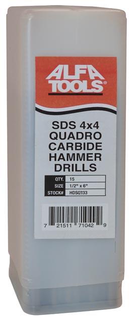 SDS 4 x 4 Quadro Contractor Pack, 1/4" Drill, 10" Drilling Depth, 12-1/4" Overall Length, Solid Carbide Quadro Head, 4 Slot SDS Drive System, 25 per Package