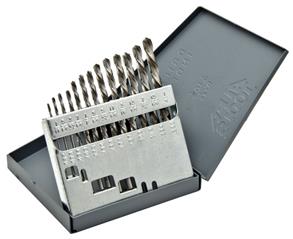 Alfa USA Jobber Length 15 piece SWG Number Drill Set in Steel index, Fractional Sizes 1/16" to 1/2" x 32nd increments, High Speed Steel, Bright Finish, 118° Point, Straight Shank, Heavy Duty, Left Hand Spiral, Made in USA
