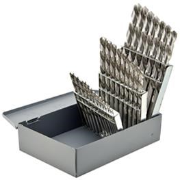 Alfa USA Jobber Length Cobalt 29 piece Drill Set in Steel index, Fractional Sizes 1/16" to 1/2" x 64th increments, High Speed Steel, Straw Gold Finish, 135° Split Point, NAS 907, Type J, Straight Shank, Heavy Duty, Left Hand Spiral, Made in USA
