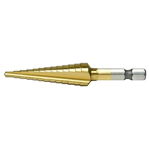 ProBit⢠Monolock⢠Multi-Step Bit, Cone Drill, CN, Style "CH", 9 Steps, 1/4" to 3/4" x 1/16ths, 2 Flutes, High Speed Steel, Cobalt, 1/4" Hex Power Shank, 3-13/16" Overall Length, 1 per Tube
