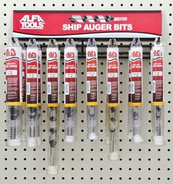Ship Auger Bit 16 Piece Set, Contains 2 of Each Sizes 1/2" to 1", 8" Overall Length, 6" Flute Length, Single Twist, Single Cutter, Medium Fast Screw Point, 1 per Box