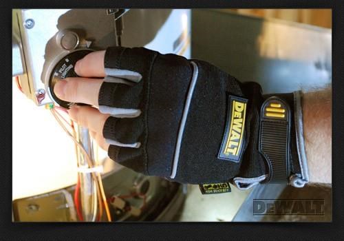 DEWALT DPG230 Technicians Fingerless Synthetic Leather Glove is a fingerless glove with ultra high “bare finger” dexterity that features a full synthetic palm overlay and extended custom wrist closure, making this the most durable fingerless in its class.