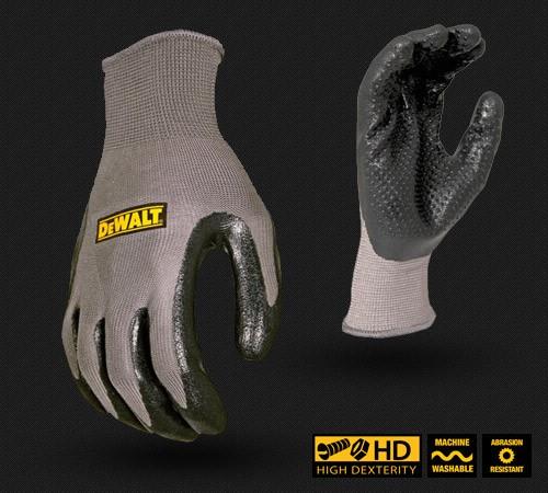 The DEWALT DPG68 UltraDex™ Dotted Nitrile Dip Glove has a lightweight Nylon/Polyester shell which makes for an incredibly comfortable glove combining high dexterity with superior tactile sensitivity. Nitrile dipped palm with raised dots provides outstanding gripping capabilities in handling dry, wet or greasy parts.