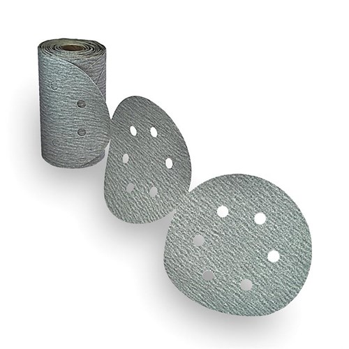 National Abrasives, 5" x No Hole x 150 Grit Silicon Carbide White Sanding Discs, PSA, Pressure Sensitive Adhesive, "B" Weight Resin Bond Paper, Stearated, No Hole, Link Roll, 100 Discs per Roll