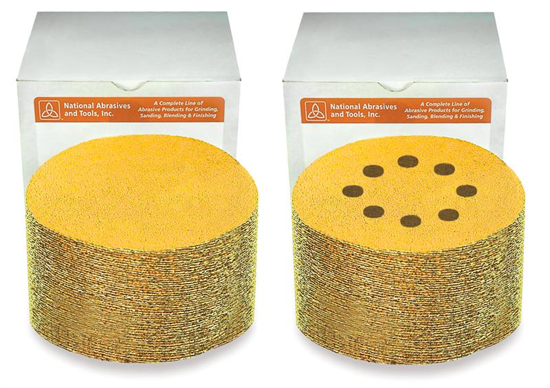 National Abrasives, 8" x No Hole x 60 Grit Aluminum Oxide Gold Discs Hook & Loop, "C" Weight Resin Bond Paper, Stearated, No Hole, 50 Discs per Pack