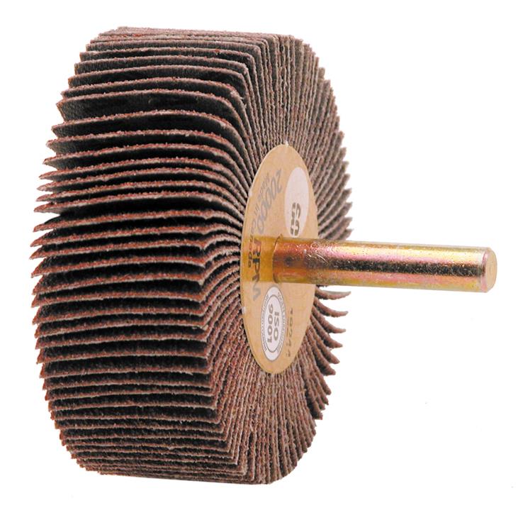 Flap Wheel, 1" Diameter, 1" Face Width, 280 Grit, Aluminum Oxide, 1/4" Round Shank, 22,900 Effective rpm, 25,0000 Maximum rpm, 10 per Pack