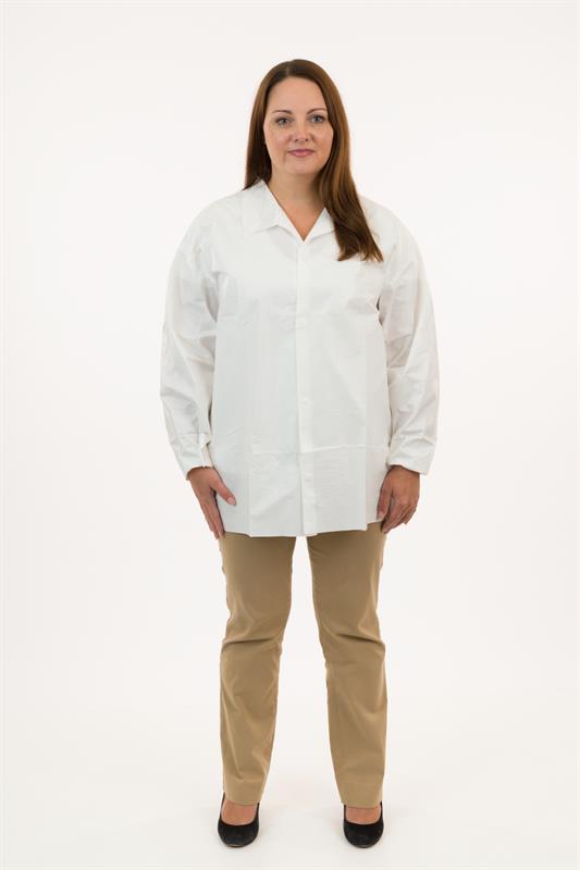 Shirts produced with state-of-the-art lamination technology to combine a soft non-woven fabric with a microporous film. Breathable fabric lets moisture vapor escape to keep wearer more comfortable vs many other fabrics. Superior liquid and particulate barrier. Environmentally friendly - can be recycled after use.