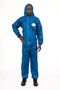 ViroGuardĀ®, Disposable Blue Coverall with Hood, Elastic Wrist & Back, Front Zipper with Storm Flap