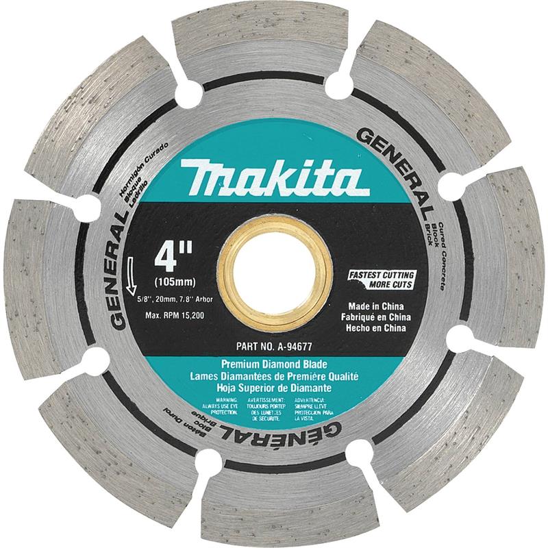 The Makita 4" Segmented Rim Diamond Blade is ideal for general purpose cutting applications including block, brick and cured concrete. The segmented slots are engineered to deliver a faster yet cooler cut. Diamond blades are part of Makita's growing line-up of solutions for concrete applications.