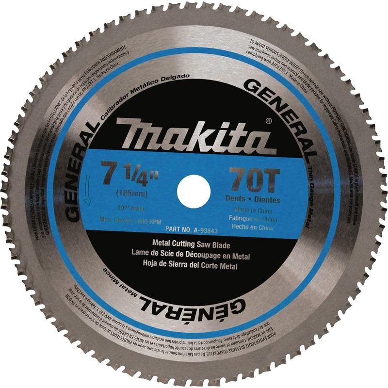 The Makita 7-1/4" (70T) Metal Cutting Saw Blade is ideal for making cuts in thin gauge sheet, corrugated and metal studs. The carbide tooth design allows for burr-free cuts that are cool to the touch. Blade lasts 50 times longer than an equivalent abrasive wheel.