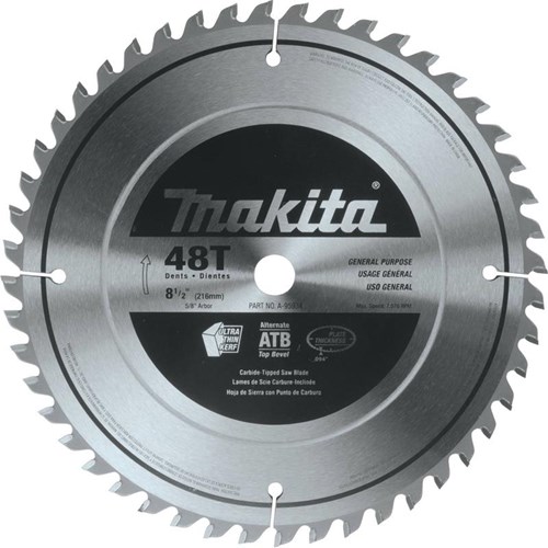 The Makita A-95934 8-1/2" 48T TCT Miter Saw Blade is engineered to work with most 8-1/2" Miter Saws for precision cutting. The steel plate on each blade is expertly tensioned and fully hardened for true cuts throughout the life of the blade. The 48 tooth design makes this a good general purpose blade that works well in many common applications.