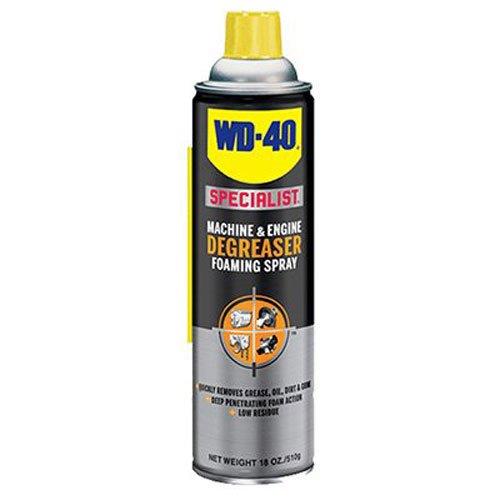 WD-40® Specialist ® Machine & Engine Degreaser Foaming Spray makes equipment run smoother, last longer and look like new. This aerosol has deep foaming penetrating action and a powerful stream that sprays up to 5 feet to quickly remove grease, oil, dirt and grime without engine disassembly. Great for auto and truck engines, tractors, forklifts, gears and chains, industrial machinery, farm and power equipment, and other metal tools. Safe for use on most metal when used as directed.