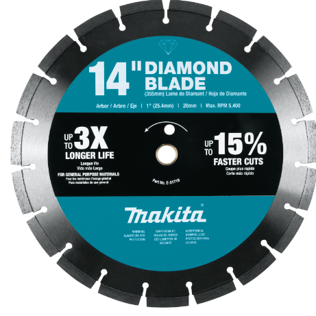 Makita Diamond Blades are designed to be used with power cut saws for making cuts in a variety of concrete and masonry materials. The high quality steel core is expertly tensioned for true cuts and added durability. Each blade features the highest quality diamonds and the segments are laser welded for added durability and improved cutting efficiency.