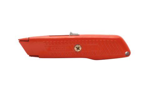 - Spring-loaded blade retracts automatically when pressure on slide button is released.