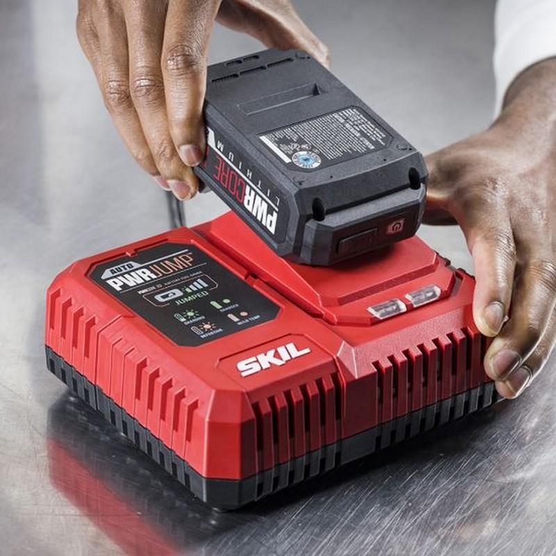 Get Powered Up Fast. Charge any SKIL 20V PWRCORE Lithium battery in a flash with the SKIL PWRCORE 20 Auto PWRJUMP Charger. Less charging time for batteries means less downtime, getting you back to the job faster. When you power up your tools with the SKIL 20V Charger, nothing can stand between you and getting the job done.