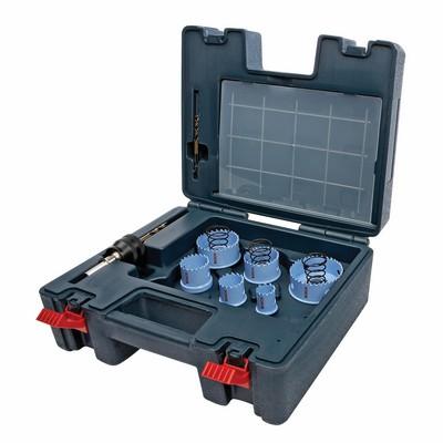 • Package Contents: 6 Holesaws: 7/8 In., 1-1/8 In., 1-3/8 In., 1-3/4 In., 2 In., 2-1/2 In.; 4 Large Adapters; 2 Small Adapters; 3/8 In. Quick Change Mandrel; Springs for Hole Saws 1-3/4 In. to 6 In.