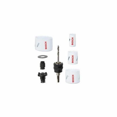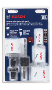 Bit Sizes: 1 In., 1-1/2 In., 2-1/8 In., 2-1/2 In.Case Included: NoDrill Bit Type: Hole SawNumber of Pieces: 8Package Contents: 4 Hole Saws: 1 In., 1-1/2 In., 2-1/8 In., 2-1/2 In.; 1 Small Adapter, 1 Large Adapters, 1 Quick Change Mandrel, 1 Pilot BitRecommended Safety Equipment: Safety GlassesBit Material: CobaltTeeth Per Inch: 5 Teeth Per InchBit Diameter: 1 In., 1-1/2 In., 2-1/8 In., 2-1/2 In.Hole Saw Type: MultipurposeKit: Yes
